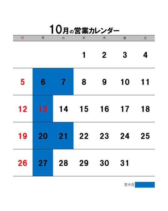 日頃は、アルピーヌセンター名古屋緑をご愛顧いただき誠にありがとうございます。各ショールームの10月・11月の営業日カレンダーについては以下とさせていただきます。