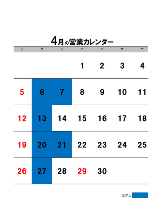 日頃はアルピーヌセンター名古屋緑をご愛顧いただき誠にありがとうございます。ショールームの3月・4月の営業日カレンダーについては以下とさせていただきます。